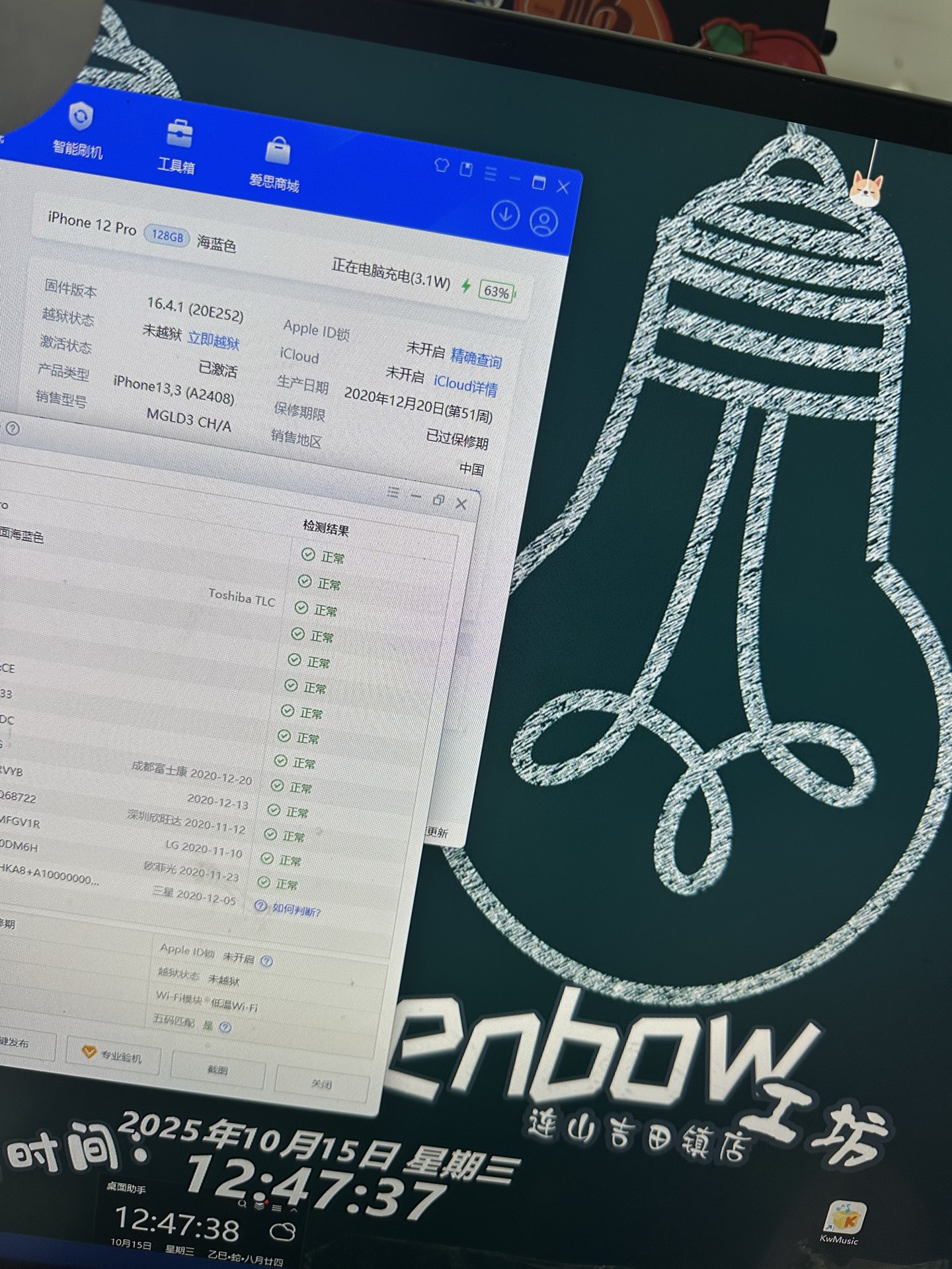 [苹果] 1350元 国行双卡双待三网无锁iPhone 12 Pro 128G 海蓝色 6.1寸 直... |